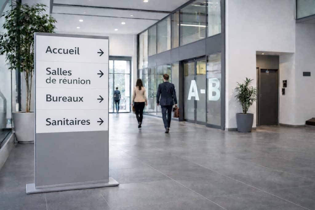 Dans les entreprises multisites, les sièges sociaux de grande taille, les établissements de santé, les campus ou les usines étendues, la qualité de cette orientation devient déterminante. Sans elle, les visiteurs errent, les prestataires perdent du temps, les nouveaux collaborateurs se sentent désorientés et les équipes en place sont régulièrement sollicitées pour des renseignements répétitifs. La signalétique directionnelle contribue donc à protéger le temps de travail tout en améliorant l’expérience du lieu.